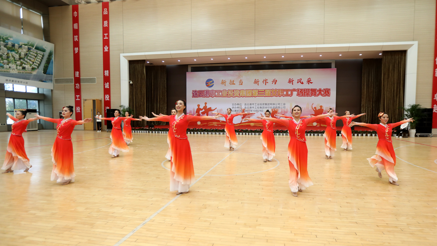 “新?lián)?dāng)、新作為、新風(fēng)采”,增進(jìn)職工友誼,凝聚團(tuán)隊(duì)力量。10月29日,由集團(tuán)工會(huì)主辦,徐圩投資公司承辦的集團(tuán)公司第三屆女職工廣場(chǎng)操舞大賽在徐圩新區(qū)體育館激情開(kāi)賽,來(lái)自各單位的11支代表隊(duì)近150名女職工共同獻(xiàn)上一場(chǎng)精彩的文化盛宴。市婦聯(lián)副主席臧永明,集團(tuán)公司黨委副書(shū)記戴鴻鳴、紀(jì)委書(shū)記汪群、工會(huì)主席劉承志等領(lǐng)導(dǎo)參加活動(dòng)。