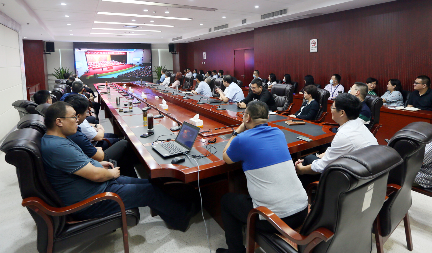 集團(tuán)公司領(lǐng)導(dǎo)班子成員在總部會議室收看了開幕盛況。