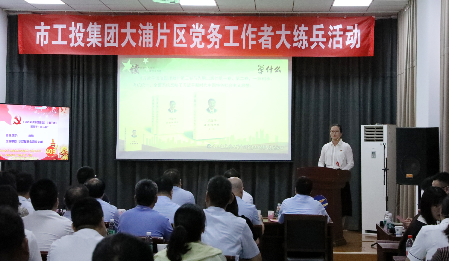 為進(jìn)一步提高基層黨務(wù)工作者“說、寫、做”能力,不斷提升基層黨建規(guī)范化建設(shè)水平,9月4日下午,集團(tuán)公司黨委在神特新材料公司開展大浦片區(qū)黨建結(jié)對(duì)共建單位黨務(wù)工作者大練兵活動(dòng)。市委組織部黨員教育中心主任許志青、市國資委黨群工作處處長閆超群、集團(tuán)公司黨委副書記戴鴻鳴等出席活動(dòng)。 本次大練兵活動(dòng)立足“以考強(qiáng)兵,破解理論不精;以講練兵,確解業(yè)務(wù)不足”,由公文撰寫和現(xiàn)場(chǎng)“說黨課”比賽兩部分組成,來自大浦片區(qū)黨建共建單位9個(gè)黨支部的10名基層黨務(wù)工作者同臺(tái)競(jìng)技,展示風(fēng)采。