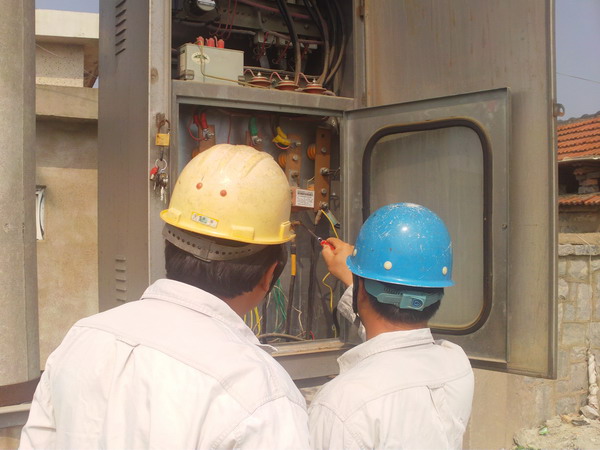 職工在巡視設(shè)備 近日天氣持續(xù)高溫,徐圩供電所為保證轄區(qū)內(nèi)用電戶正常供電,頭頂烈日,對供電線路、設(shè)備進(jìn)行巡視、消缺,為高溫天氣下客戶用電提供可靠保證。 在巡視中,發(fā)現(xiàn)轄區(qū)內(nèi)辛控線101#變壓器電壓不足,容量不能滿足高溫下用戶需要,對居民生活用電影響很大。該所立即調(diào)換一臺125KVA變壓器,未收取增容費(fèi)用,受到用電戶一致贊許。(馬德松)