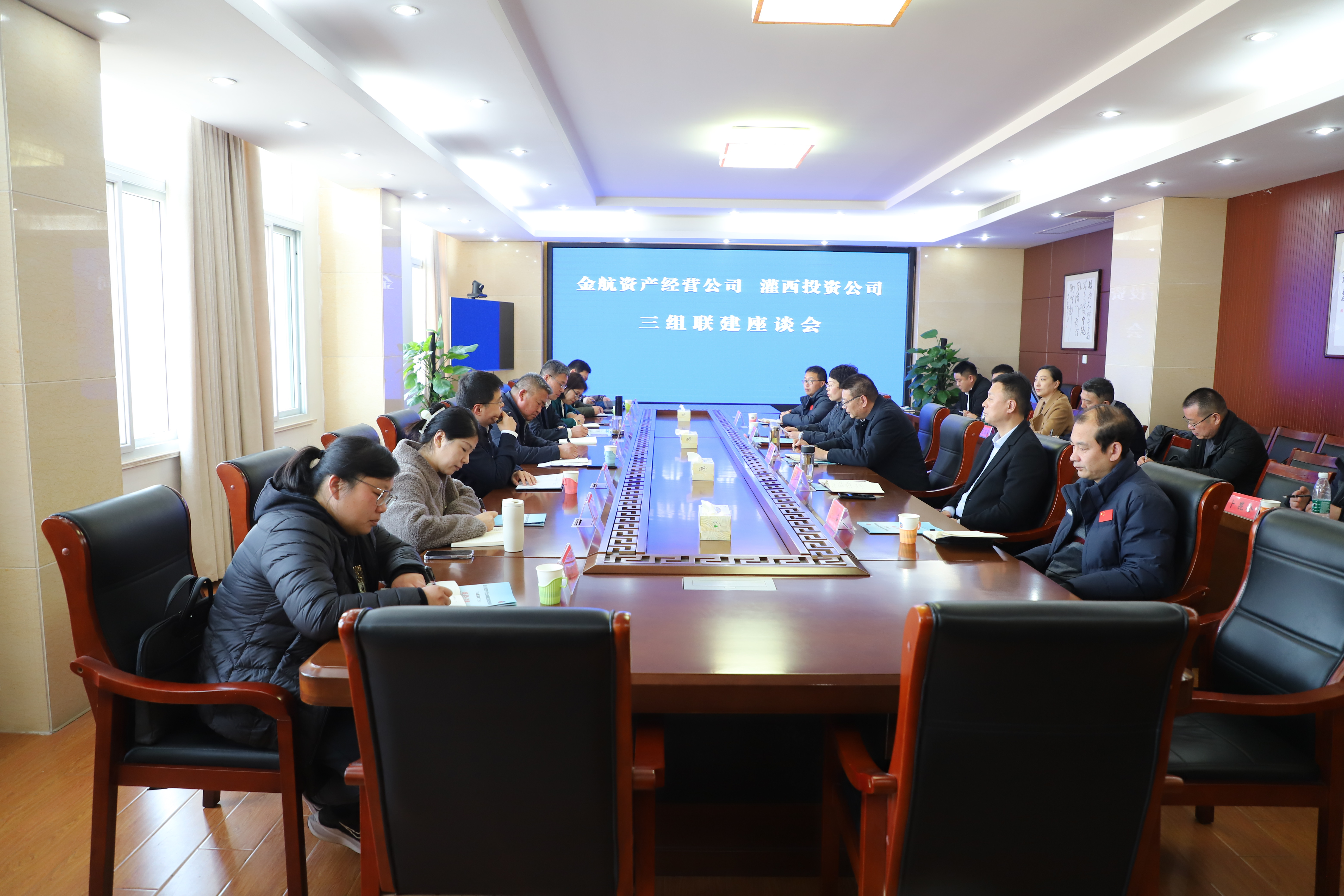 3月21日,連云港金航資產(chǎn)經(jīng)營公司黨總支書記、董事長、總經(jīng)理莊清付等一行人員來灌西公司觀摩交流三組聯(lián)建工作,公司黨委書記、董事長孫政權(quán)、黨委副書記、總經(jīng)理吳衛(wèi)平、黨委副書記、工會主席王宏陪同觀摩交流。