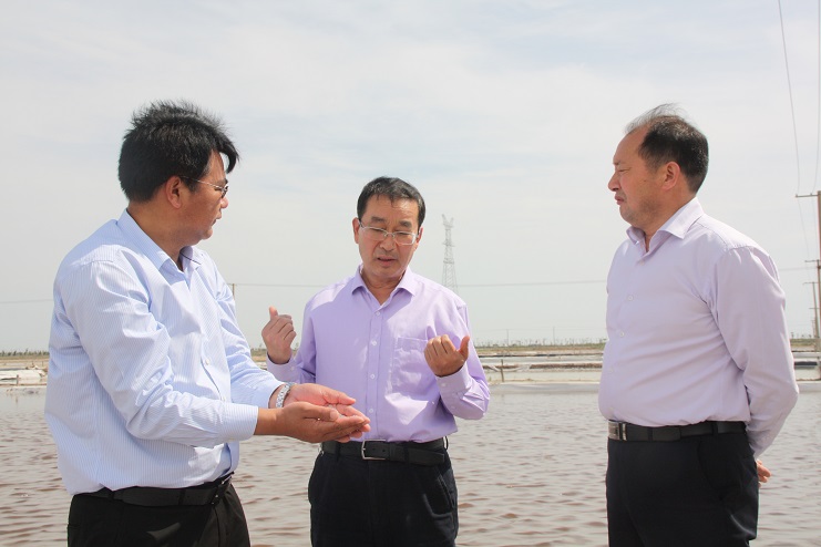 5月18日,集團(tuán)公司總經(jīng)理胡建明來我公司就鹽業(yè)生產(chǎn)工作進(jìn)行調(diào)研,投資公司董事長(zhǎng)、黨委書記王德志、總經(jīng)理李國(guó)文陪同調(diào)研。