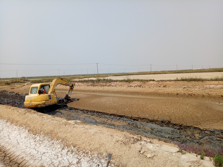 目前,實(shí)業(yè)公司制鹽分公司、海鹽基地一班正在進(jìn)行清淤擴(kuò)容改造工程。 海鹽基地一班班組近日對(duì)土塘進(jìn)行清淤改造。兩臺(tái)挖掘機(jī)頂著連日來(lái)的高溫天氣連續(xù)工作?,F(xiàn)該班班組的三排土塘清淤改造工作基本完成。(實(shí)業(yè)公司)