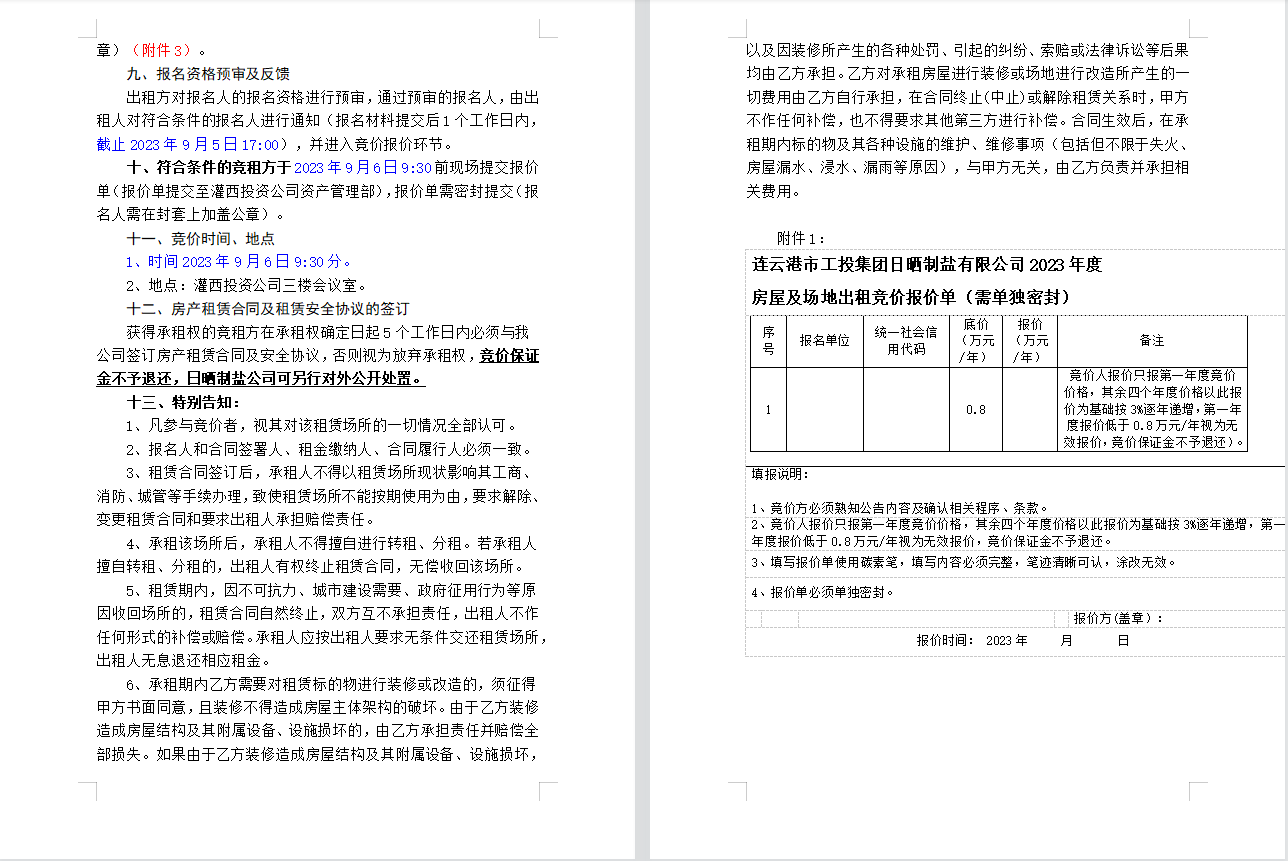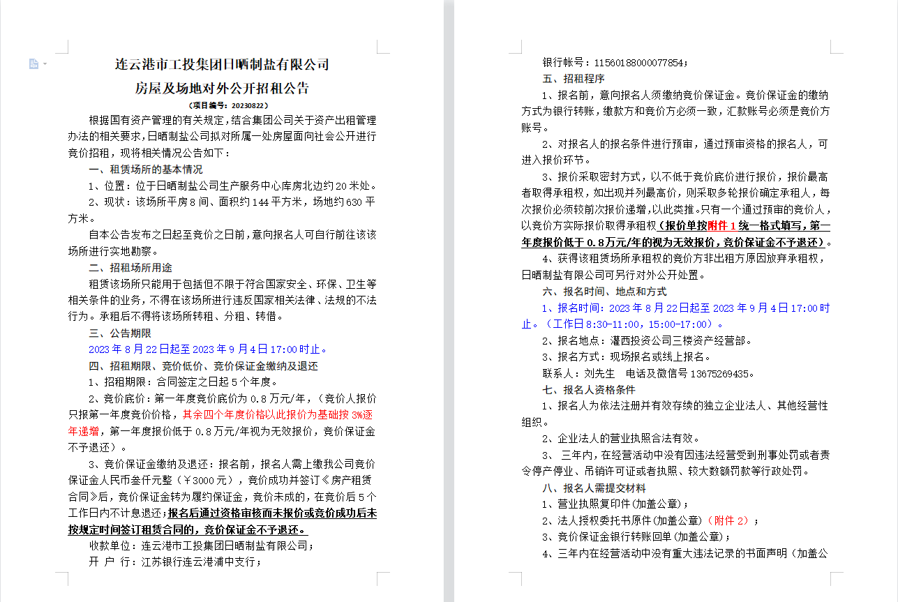 連云港市工投集團(tuán)日曬制鹽有限公司 房屋及場地對(duì)外公開招租公告