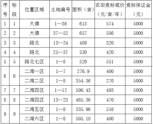 一、競標(biāo)農(nóng)田標(biāo)段、位置、面積、競標(biāo)底價、競標(biāo)保證金: