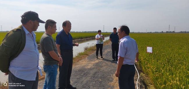 9月24日中午,江蘇省農(nóng)業(yè)科學(xué)院蘇北科技服務(wù)中心主任楊四軍研究員一行到大新農(nóng)場察看“優(yōu)香粳”水稻的生長情況,與農(nóng)場負責(zé)人及條田工就優(yōu)香粳當前生長情況及生長后期的注意事項提出了指導(dǎo)性建議。優(yōu)香粳是由省農(nóng)科院提供的優(yōu)質(zhì)稻米品種,曾在2018年上海優(yōu)質(zhì)稻米品鑒會獲金獎。(劉 楊)