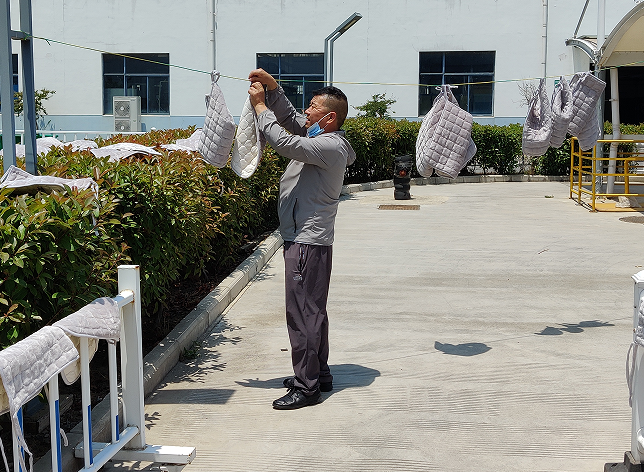可是最近他有點(diǎn)不高興。幾次大浦片區(qū)在公司門外舉行的核酸檢測,因?yàn)闀r(shí)間不湊巧,他總是當(dāng)不了“大白”。丁師傅是個(gè)閑不住的人,這不,夏天到了,食堂坐墊不用了,該洗了,丁師傅說,我來吧,咱當(dāng)不了“大白”,就當(dāng)“小白”吧。于是,說干就干,端午節(jié)后的周三上午將幾十個(gè)坐墊拿走認(rèn)真洗了一番,晾到三號(hào)廠房邊上的架子上,下班前收好送到辦公室,他說,等到晚秋,還要將坐墊綁到餐桌椅子上,“咱老同志做事要有始有終嘛”。(規(guī)劃發(fā)展部