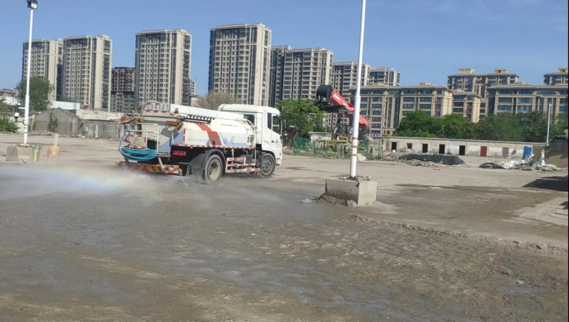 ? ? ??5月1日,裕達(dá)分公司加強(qiáng)了對(duì)光伸、德蘭市場(chǎng)商鋪及周邊貨場(chǎng)巡查力度,確保節(jié)日期間安全穩(wěn)定,重點(diǎn)對(duì)330畝、瑞橋貨場(chǎng)加強(qiáng)環(huán)境監(jiān)管。同時(shí),對(duì)接環(huán)衛(wèi)分公司,聯(lián)系灑水車輛對(duì)瑞橋貨場(chǎng)裸露地塊進(jìn)行一日四次的灑水降塵,確保場(chǎng)地及周邊環(huán)保無(wú)揚(yáng)塵。