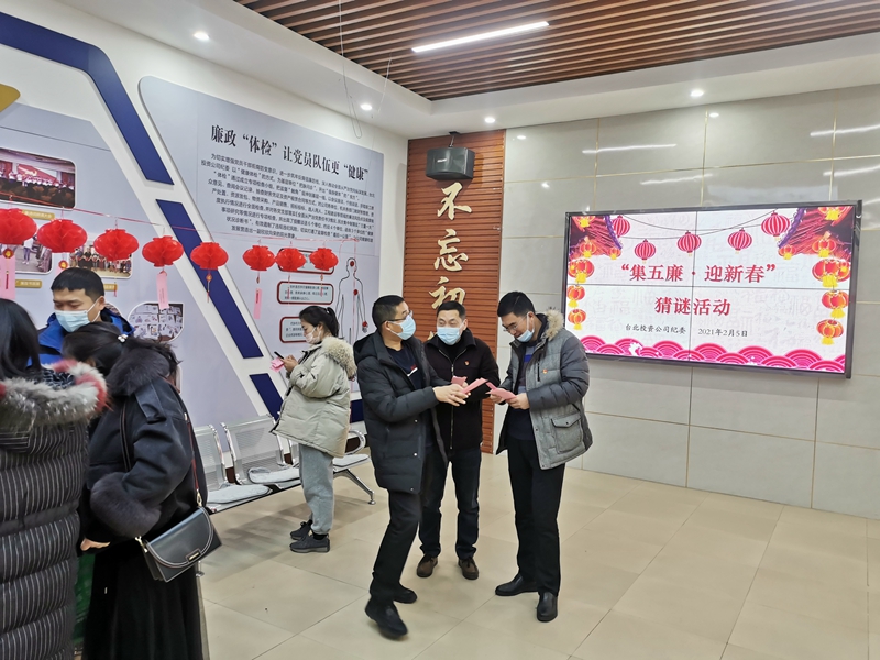 2月5日上午,臺(tái)北廉政文化教育室中人聲鼎沸,氣氛活躍,公司紀(jì)委“集五廉·迎新春”猜謎活動(dòng)在干部職工中掀起一股節(jié)前廉政熱潮。