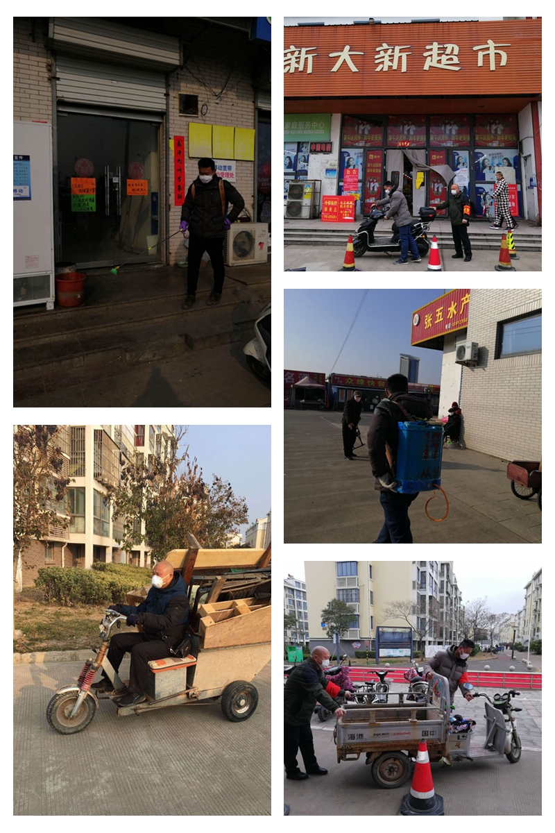 年初三開始,和值班領(lǐng)導(dǎo)站在鄰里中心入口處時(shí)刻提醒業(yè)主外出戴口罩,做了很多“不近人情”的事,常常不被理解,甚至于還要受人責(zé)罵。對(duì)于這些他從不埋怨,本著初心只為從源頭上遏制疫情把好關(guān)。小區(qū)內(nèi)全面實(shí)施嚴(yán)格消毒管理措施,韓加柱、盧廷高二人主動(dòng)承擔(dān)了鄰里中心的消毒水噴灑工作。樓道里、垃圾桶旁,不放過任何死角。沒有N95口罩,來(lái)不及經(jīng)專業(yè)的知識(shí)培訓(xùn)。近日來(lái)共計(jì)噴藥消毒近萬(wàn)多平方,節(jié)日期間清掃垃圾,消毒垃圾桶他們用默默的行動(dòng)為廣大業(yè)主筑起一道堅(jiān)固的生命防線。